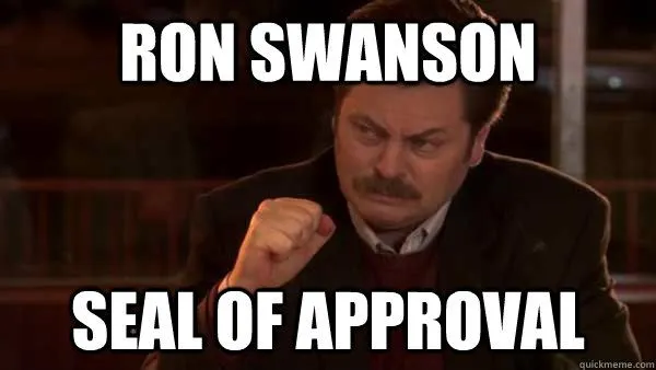 Not the broccoli. I love broccoli, but Ron does not. Watch ‘Parks & Rec’. Specifically the episode where Rob Lowe cooks him mushroom steaks. Or the episode where he cooks the pig. Do you even know 'bout Ron Swanson.